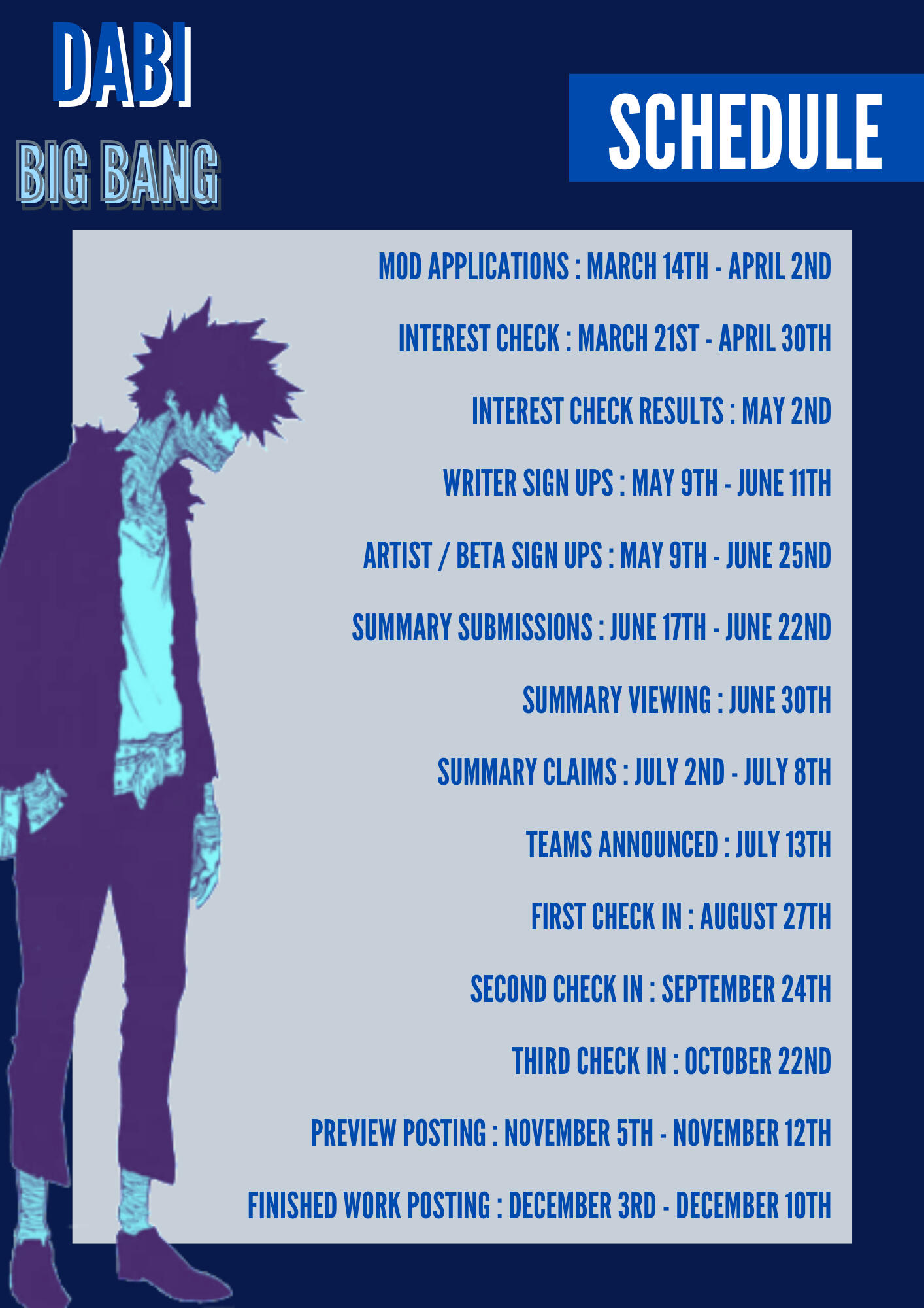 Check-ins are milestones for the team's pieces. Every contributor has to submit their progress so we, the mods, can check that the work is being done.After all check-ins are completed, then it's posting day! Writers post their works and artists share their art. We encourage you to promote each other's piece while posting as well.π₯IS THIS LIKE A ZINE?π₯